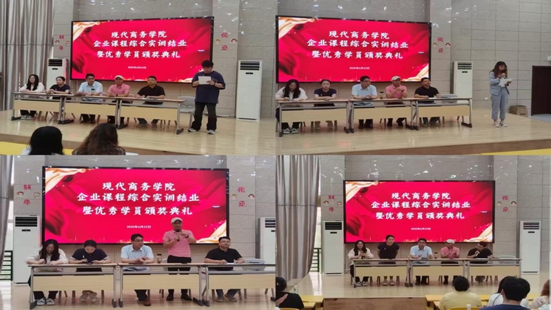 6月23日下午,安慶職業(yè)技術(shù)學(xué)院現(xiàn)代商務(wù)學(xué)院舉行上半年企業(yè)綜合實(shí)訓(xùn)課程結(jié)業(yè)暨優(yōu)秀學(xué)員頒獎(jiǎng)典禮。現(xiàn)代商務(wù)學(xué)院院長金啟勝,安徽云霽電商公司負(fù)責(zé)人、安徽省產(chǎn)業(yè)教授汪義德,學(xué)院教學(xué)工作負(fù)責(zé)人、學(xué)生工作負(fù)責(zé)人、教師代表以及參加本次實(shí)訓(xùn)課程的全體學(xué)生共同出席。該院學(xué)生工作負(fù)責(zé)人主持。