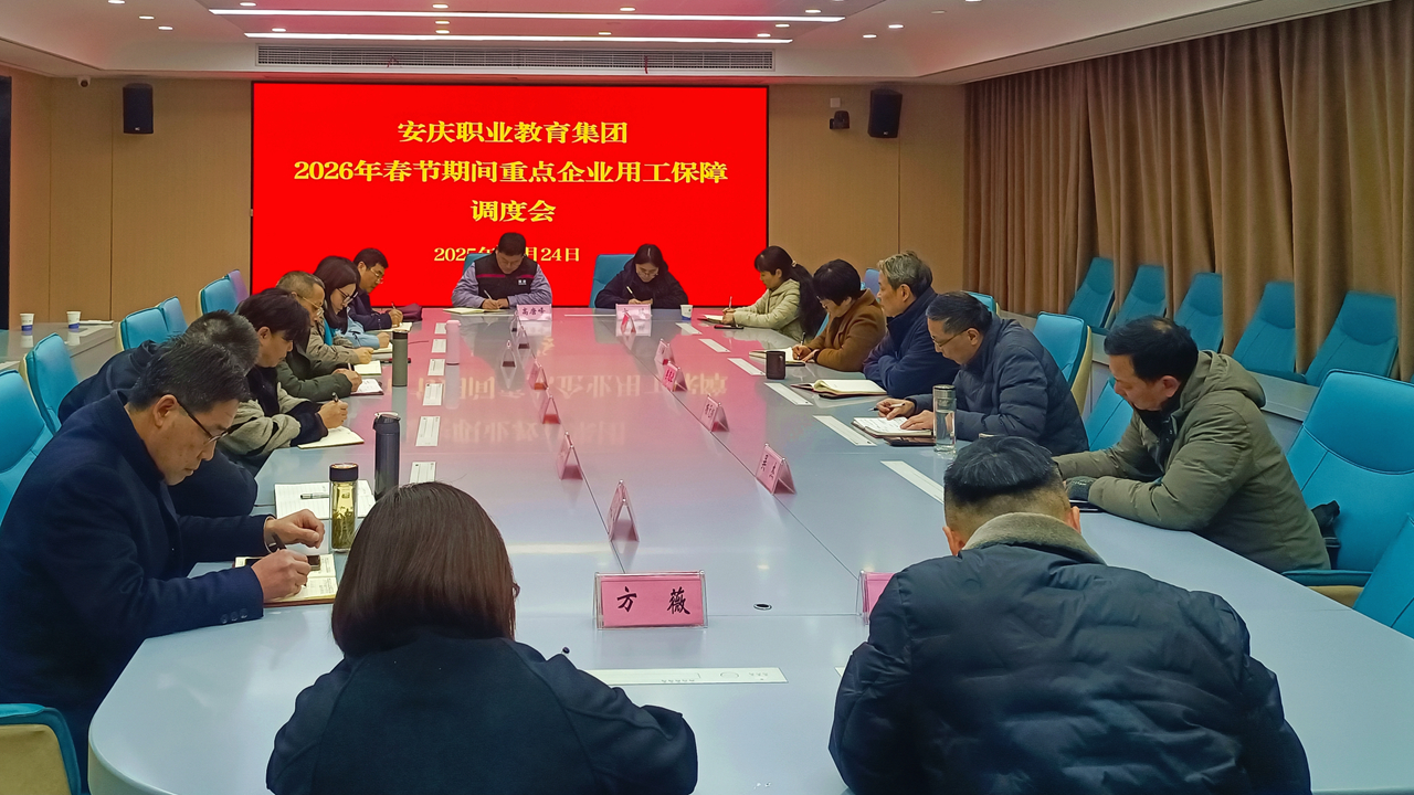 12月24日下午,安慶職教集團(tuán)在安慶職業(yè)技術(shù)學(xué)院召開春節(jié)期間園區(qū)重點(diǎn)企業(yè)用工保障調(diào)度會(huì)。安慶職教集團(tuán)副理事長(zhǎng)、秘書長(zhǎng)李克讓主持會(huì)議。安慶技師學(xué)院、安慶工業(yè)學(xué)校、安徽理工學(xué)校、安徽化工學(xué)校等集團(tuán)內(nèi)城區(qū)中職、技工院校主要負(fù)責(zé)人,安慶職業(yè)技術(shù)學(xué)院6個(gè)二級(jí)學(xué)院主要負(fù)責(zé)人參會(huì)。
